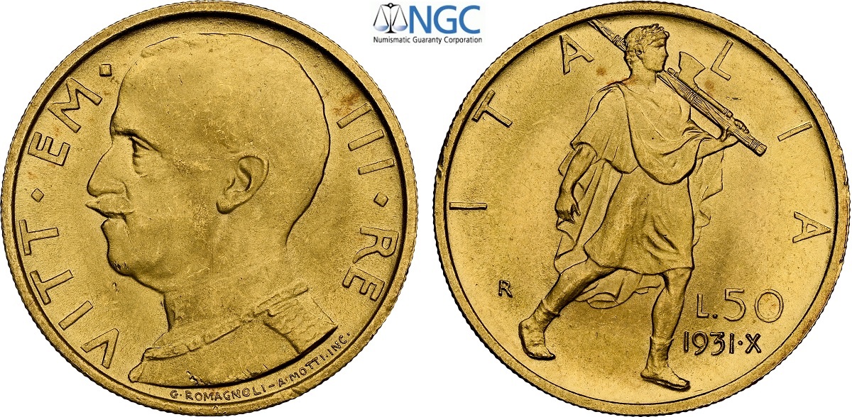 Regno d'Italia, Vittorio Emanuele III (1900-1943), 50 Lire 1931-X, Au 20,5 mm , in Slab NGC MS65