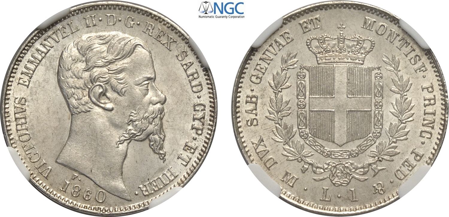 Savoia, Vittorio Emanuele II Re di Sardegna (1849-1861), Lira 1860 Milano, Ag 23 mm, in Slab NGC MS64+