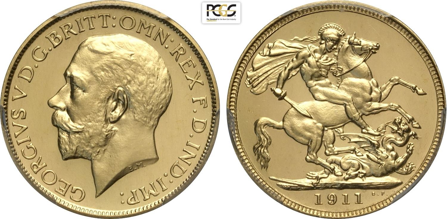 Great Britain, George V (1910-1936), Sovereign 1911, London Mint, Mintage: 3764, Au 22 mm 7,99 g, ex Salton collection, in Slab PCGS PR65+ Cameo