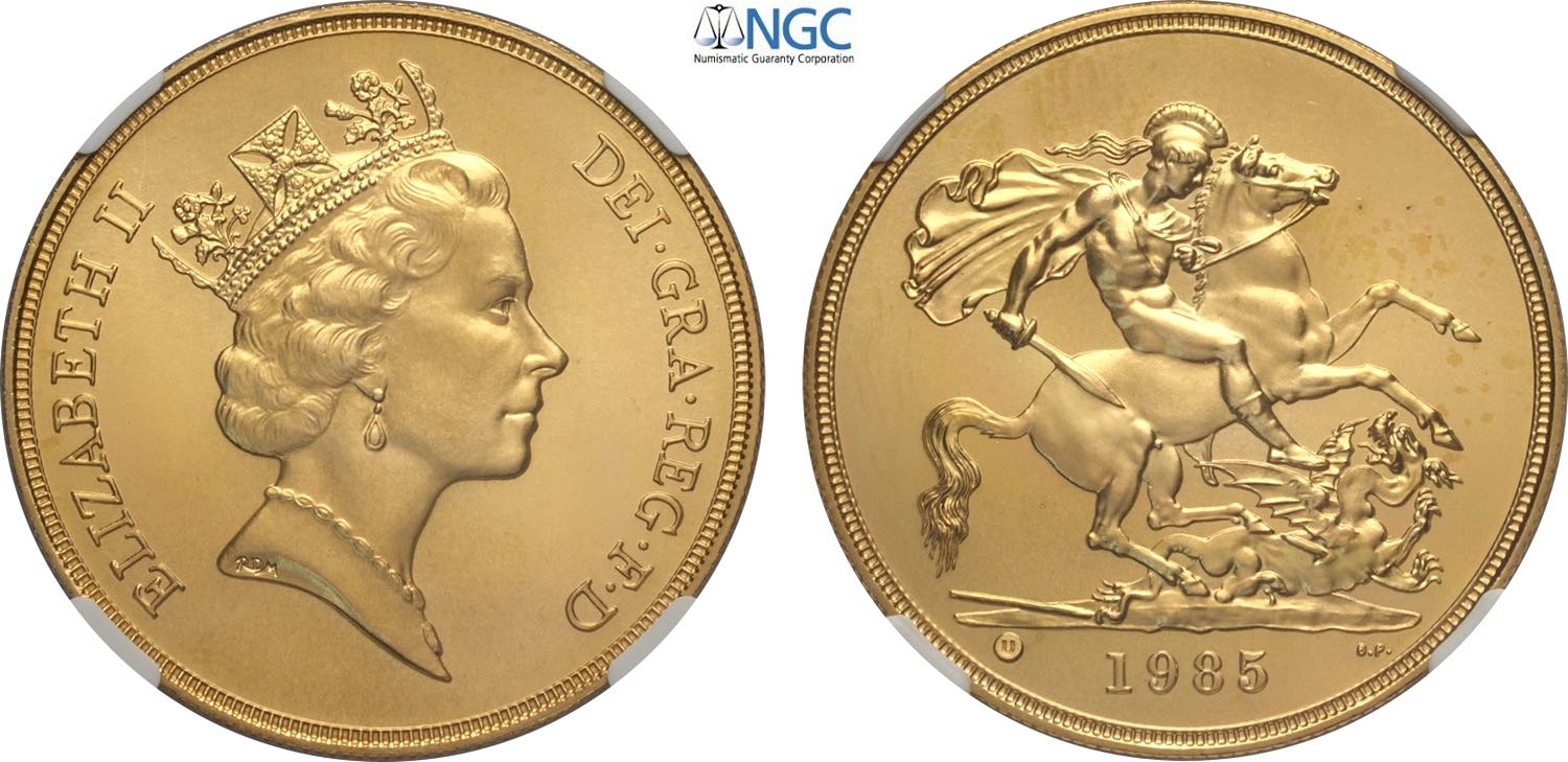 Great Britain, Elizabeth II (1952-2022), 5 Pounds 1985, London Mint, Au 36 mm 39,94 g, In Slab NGC MS69