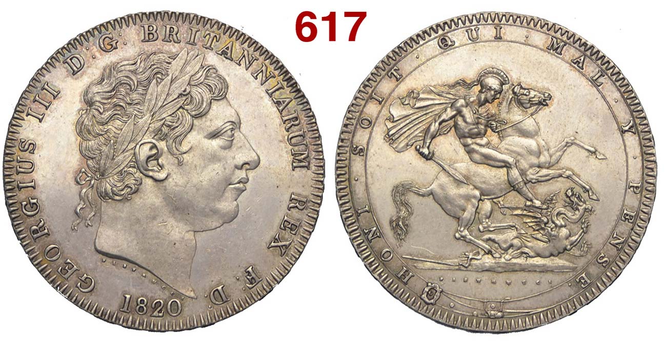 Lot 617 - Great Britain - George III - Crown 1820 - AG mm 38 g. 28,28 ...