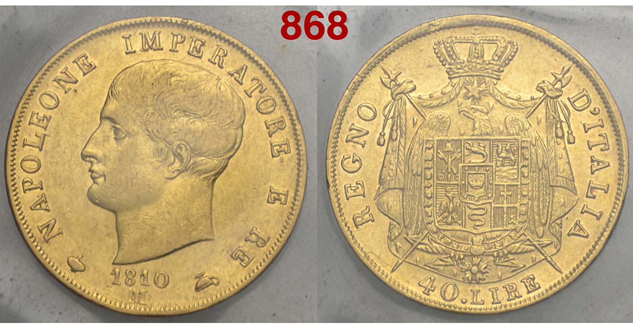 Lot 868 - Milano - Napoleone I - 40 Lire 1810 - AU mm 26 - sigillata ...