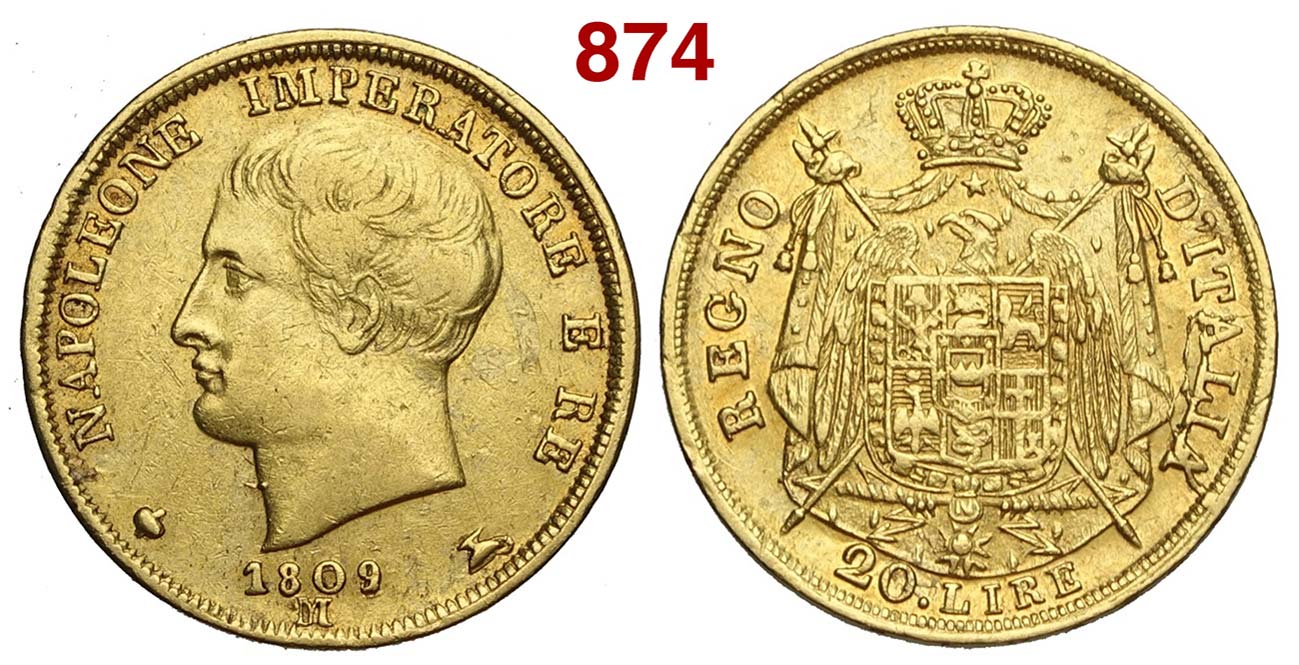Lot 874 - Milano - Napoleone I - 20 Lire 1809 - AU mm 21 - BB