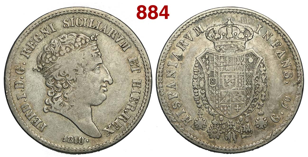 Lot 884 - Napoli - Ferdinando I - Mezza Piastra 1818 testa grande - ...