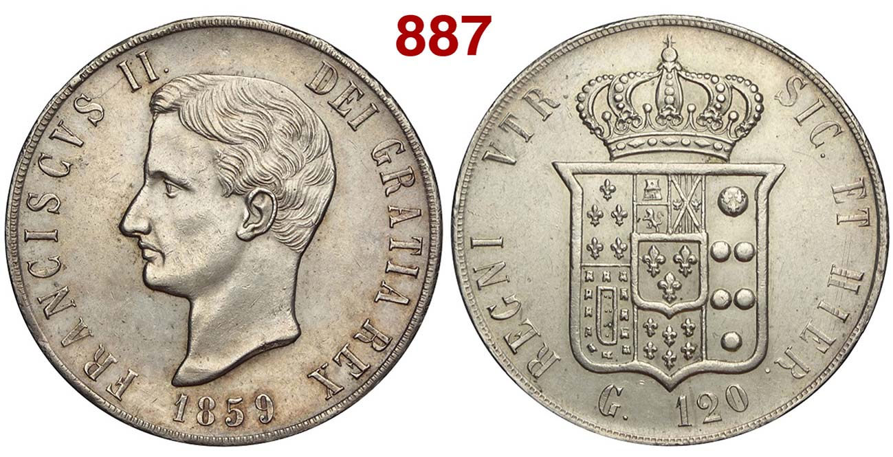 Lot 887 - Napoli - Francesco II - Piastra 1859 - AG mm 37 - lieve ...