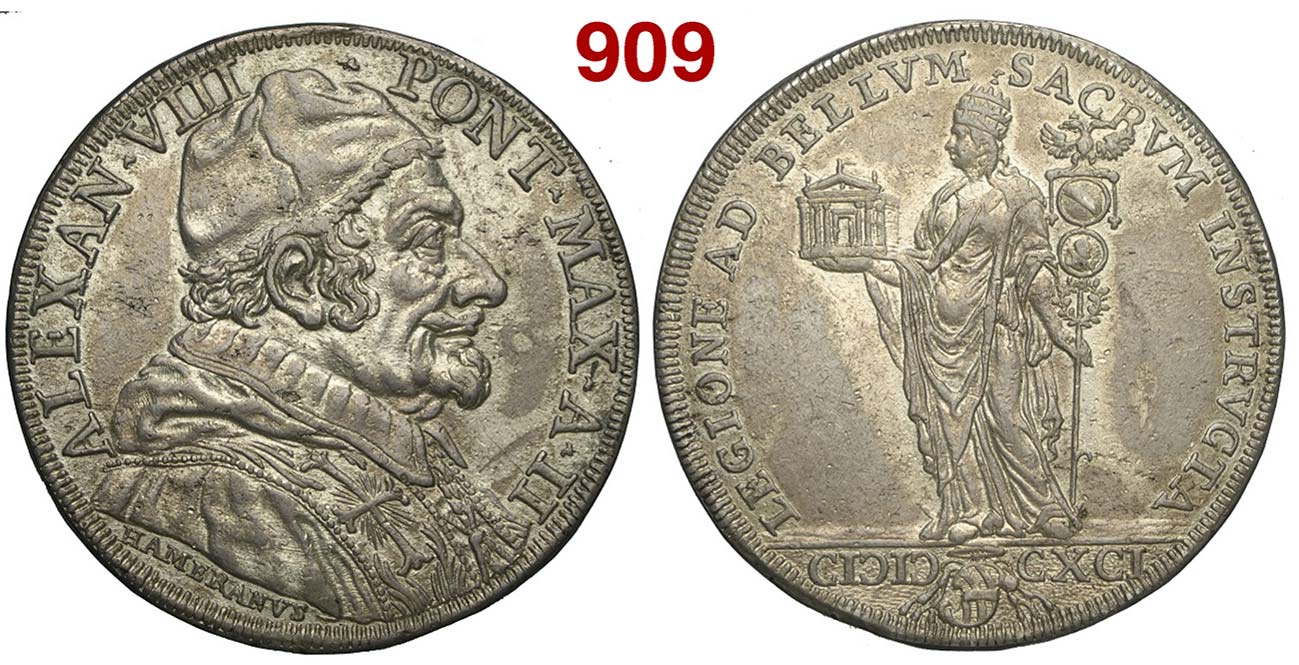 Lot 909 - Roma - Alessandro VIII - Piastra 1691 anno II - Rara Munt. ...