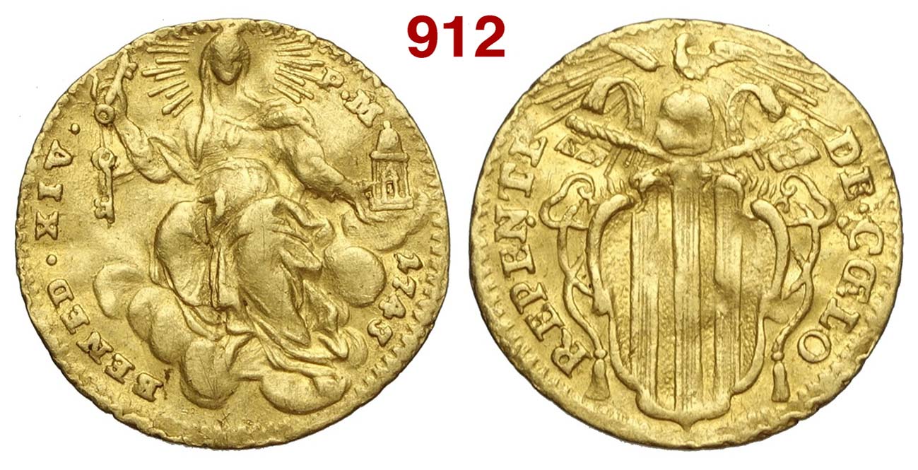 Lot 912 - Roma - Benedetto XIV - 1/2 Zecchino 1743 - AU g. 1,71 - ...