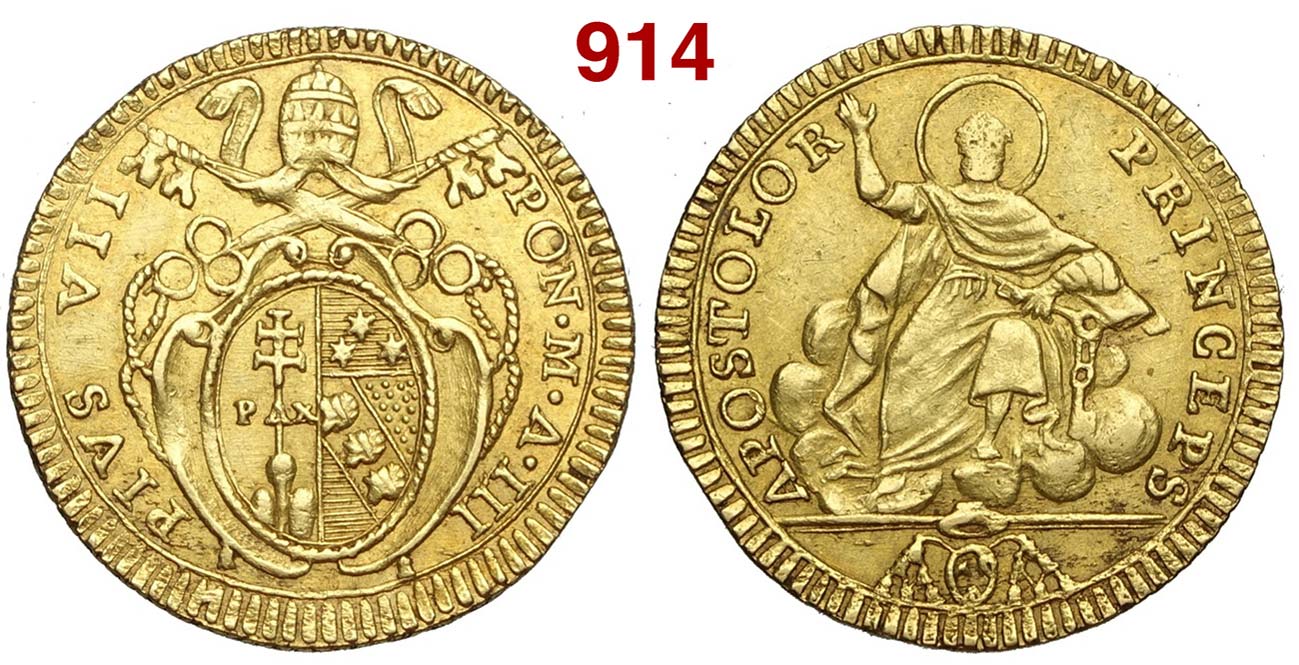 Lot 914 - Roma - Pio VII (1800-1823) - Doppia anno III - Rara AU mm ...