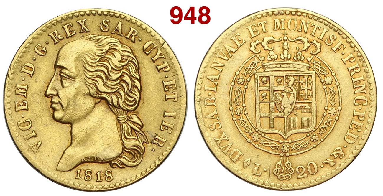 Lot 948 - Savoia - Vittorio Emanuele I - 20 Lire 1818 - Rara AU mm 21 ...