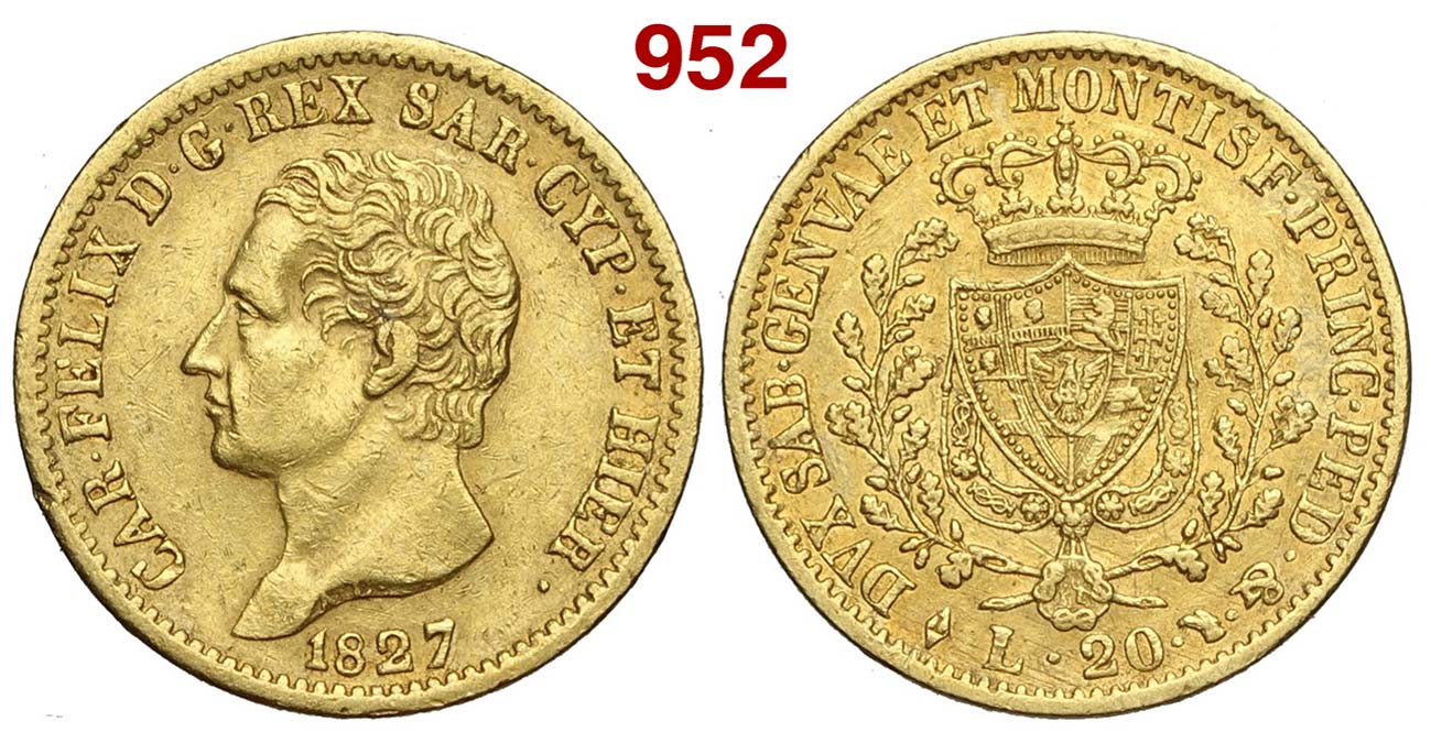 Lot 952 - Savoia - Carlo Felice - 20 Lire 1827 Torino - AU mm 21 - BB