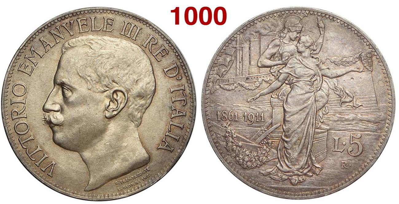 Lot 1000 - Regno d'Italia - Vittorio Emanuele III - 5 Lire 1911 - Rara ...