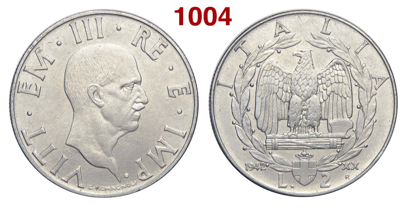 Lot 1004 - Regno d'Italia - Vittorio Emanuele III - 2 Lire 1942 - RR ...