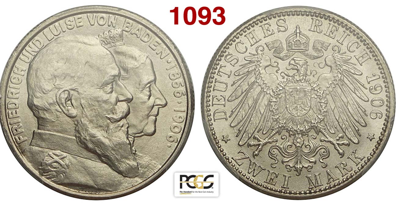 Lot 1093 - Germany - Baden - 2 Mark 1906 - AG - slab PCGS MS66