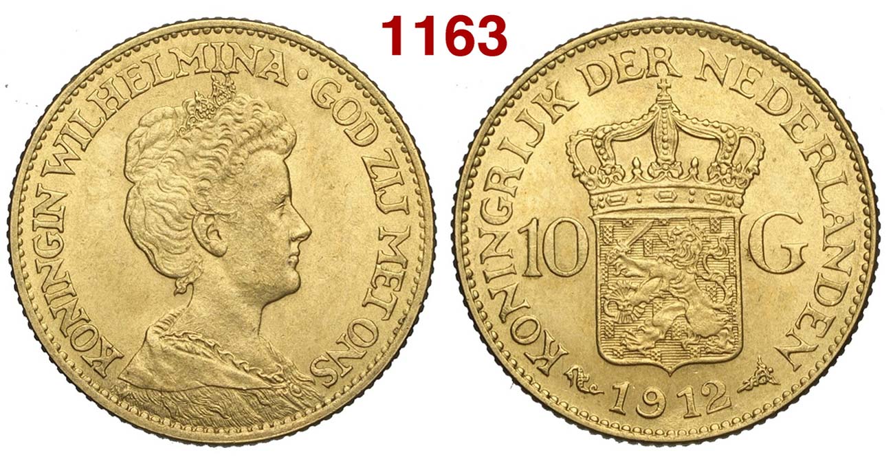 Lot 1163 - Netherlands - Wilhelmina I - 10 Gulden 1912 - AU mm 22 - FDC