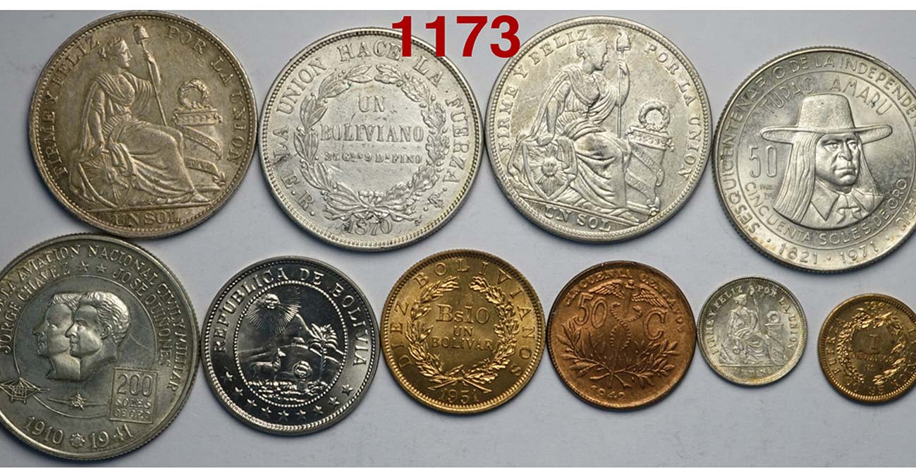 Lot 1173 - Peru & Bolivia - Lotto di 10 monete tra cui il Dinero 1872 ...