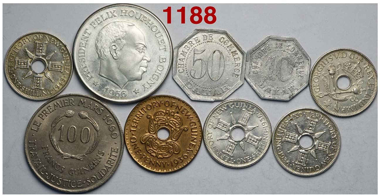 Senegal (2) Ivory Coast (1) Guinee (7) lotto di 10 monete, segnaliamo Senagal 50 Centimes Dakar 1920 SPL e i 10 Centimes Dakar 1920 ... Read more