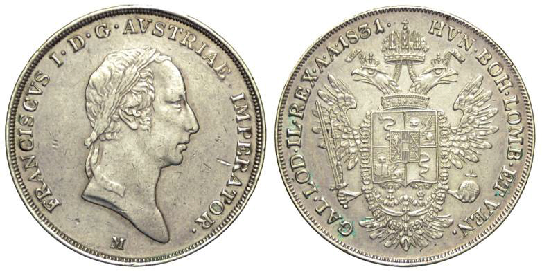 Milano Scudo da 6 Lire 1831 - Milano – Francesco I (1815-1835)Scudo da 6 Lire 1831 Non Comune AG mm 38,5 g. 25,77 BB+ Read more