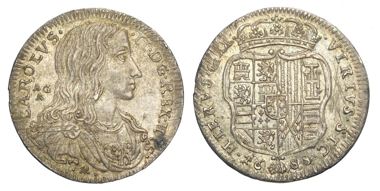 Napoli - Carlo II - Tarì 1688 - Ag mm 25,7 g 5,09 - lievi strappi di conio, SPL+