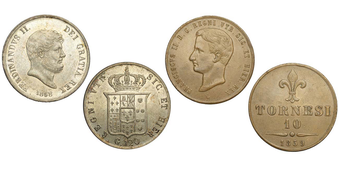 Napoli - Piastra 1858 SPL+ - 10 Tornesi 1859 due colpetti SPL - Lotto di 2 monete