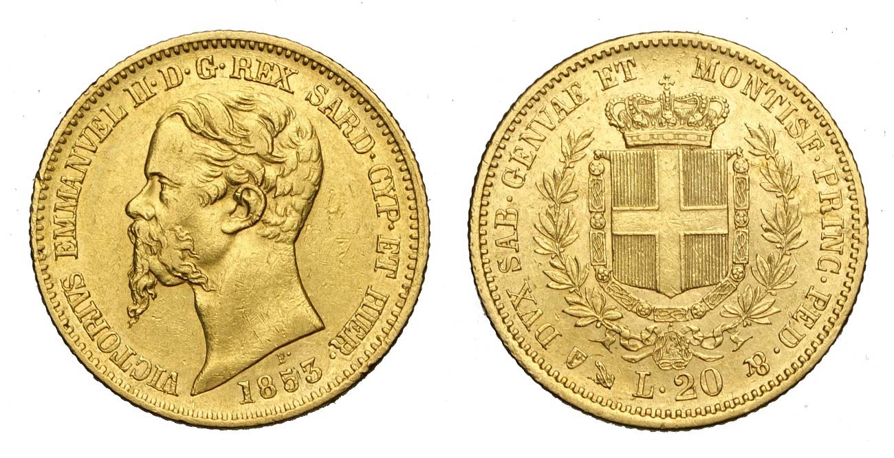 Savoia - Vittorio Emanuele II Re di Sardegna - 20 Lire 1853 Genova - Au mm 21 - BB+