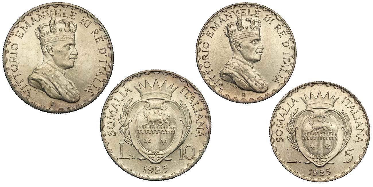 Regno d'Italia - Vittorio Emanuele III Somalia - 10 + 5 Lire 1925 - R Ag mm 28 + 25,5 - SPL-FDC