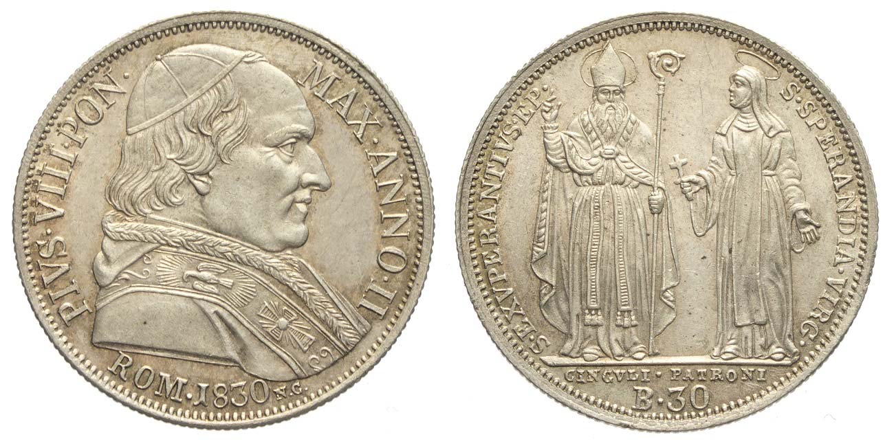 Roma, Pio VIII, Testone 1830, Rara Ag mm 26 bella patina q.FDC-FDC