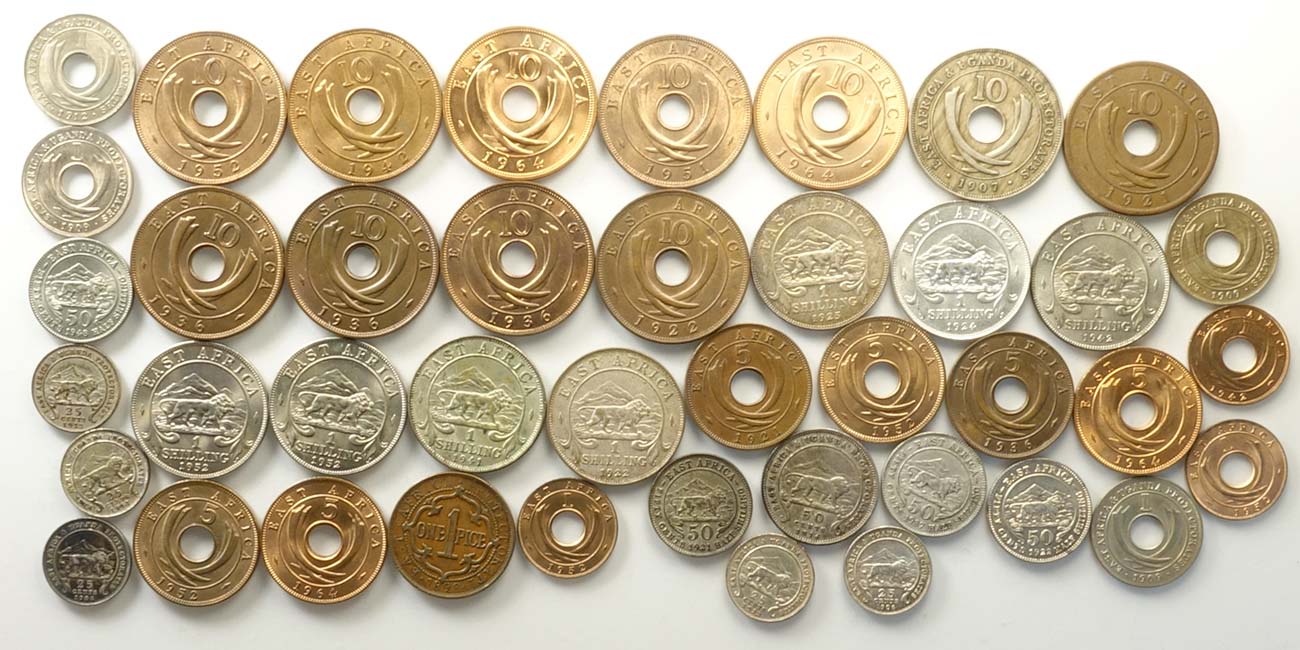 East Africa, Lotto di 42 monete, segnaliamo: 25 Cents 1906 KM-3 SPL, 25 Cents 1913 KM-10q.SPL (2 pz)
