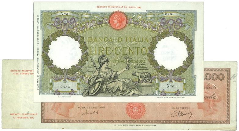 Repubblica Italiana – Lotto di 2 banconote - Repubblica Italiana – Lotto di 2 banconote:10.000 Lire 1949 MB-BB ; 100 Lire 21/12/33 SPL Read more