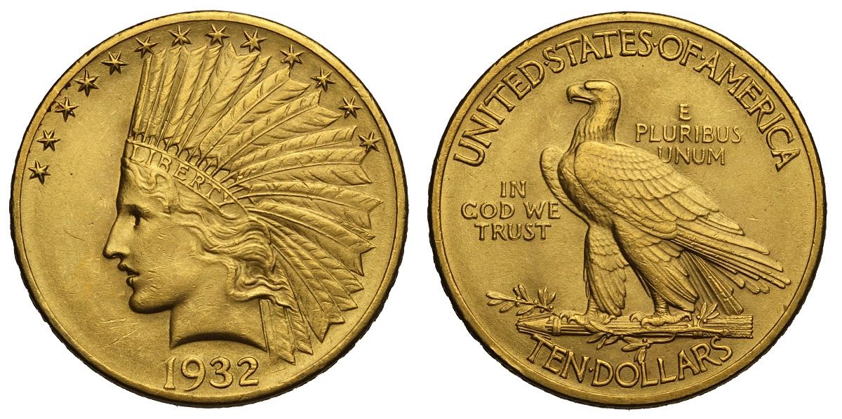 United States of America, 10 Dollars 1932, Au mm 27 q.FDC