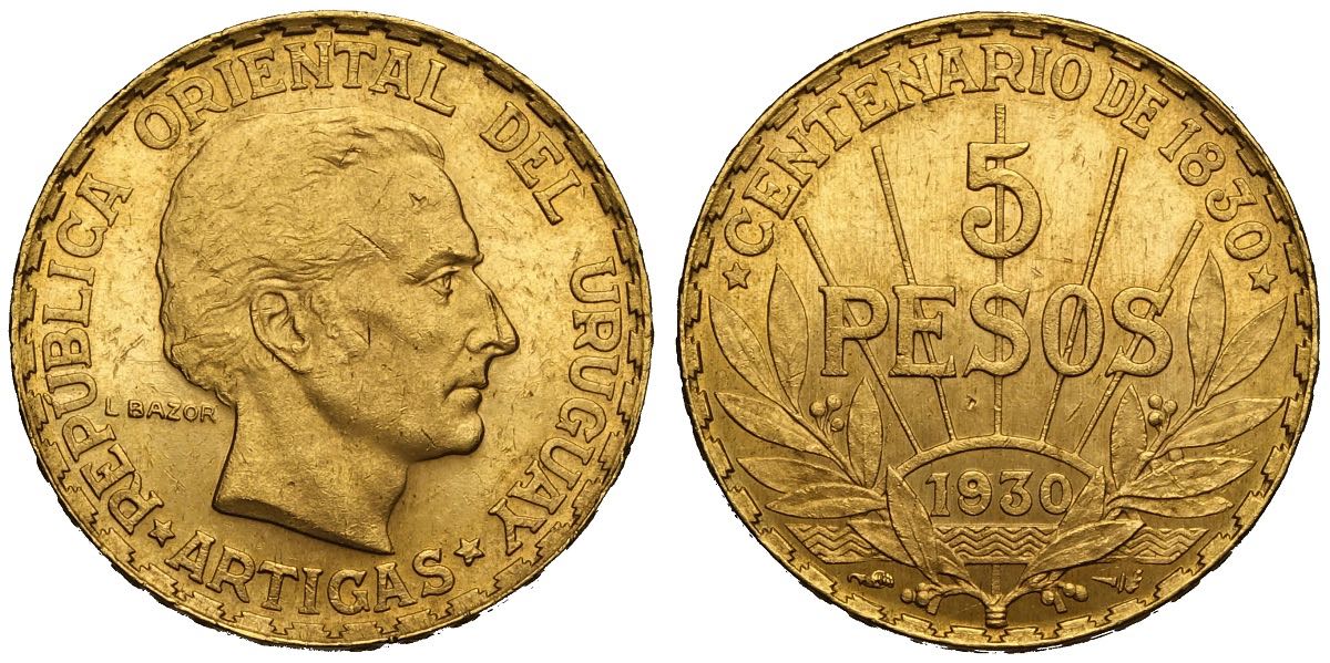 Lot 267 - Uruguay, Republic, 5 Pesos 1930, Au mm 22 SPL