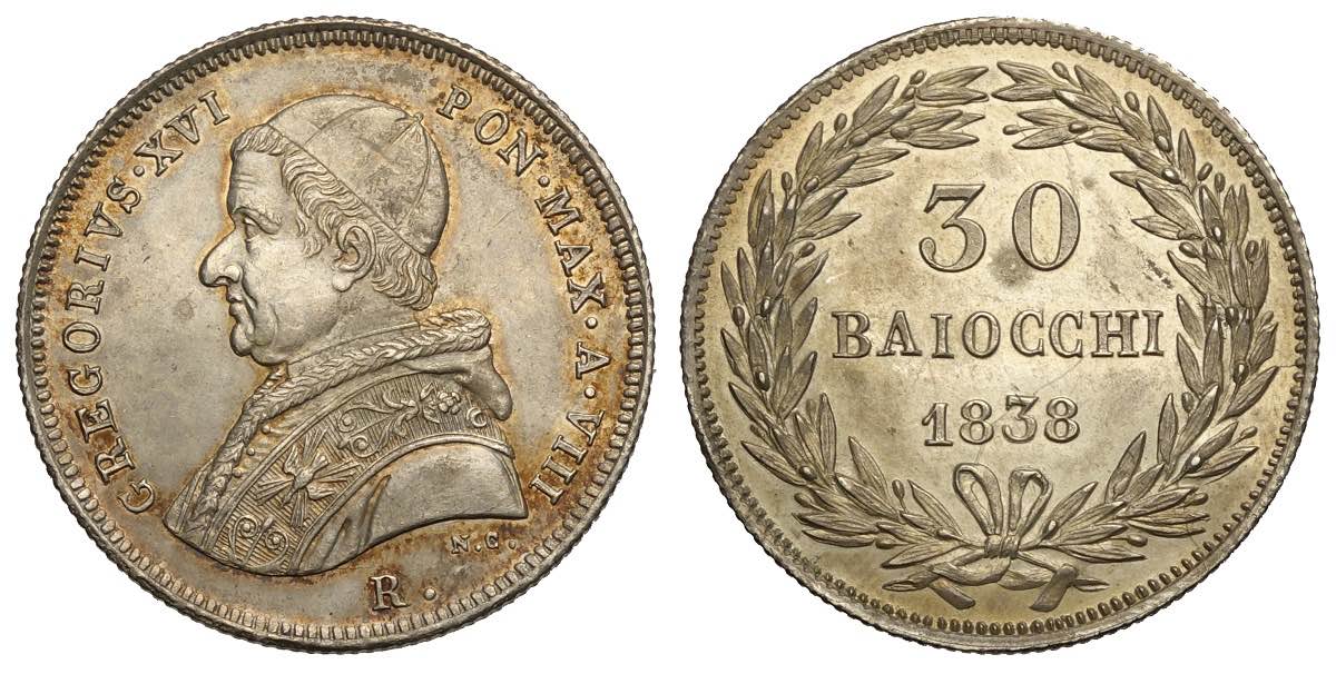 Lot 229 - Roma, Gregorio XVI, Testone da 30 Baiocchi 1838-R anno ...
