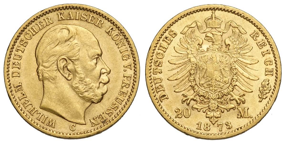 Lot 334 - Germany, Prussia, Wilhelm I, 20 Mark 1873-C Au mm 22 SPL-FDC
