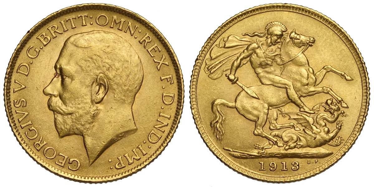 Great Britain, George V, Sovereign 1913, Au mm 22 q.FDC