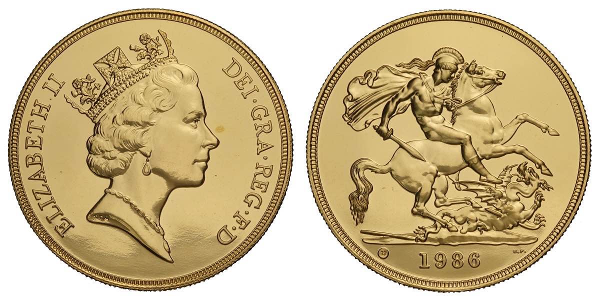 Great Britain, Elizabeth II, 5 Pounds 1986-U, Au 917 g 39,94 BU/Proof