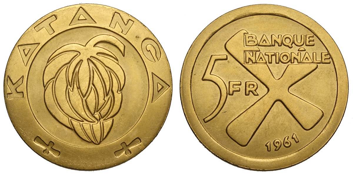 Katanga, Province, 5 Francs 1961, Au 900 g 13,33 FDC