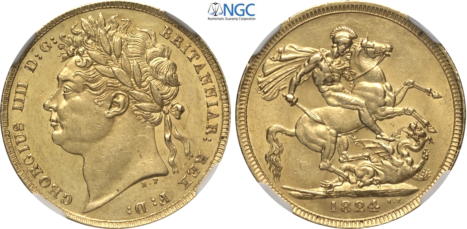 Great Britain, George IV (1820-1830), Sovereign 1824, London mint, Au 22 mm 7,99 g, ex Hammersley collection, in Slab NGC ...