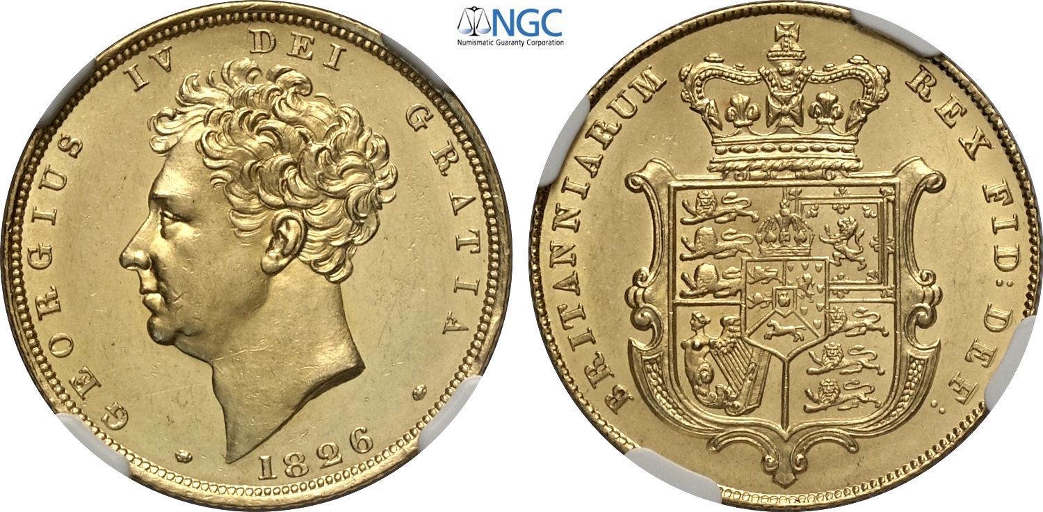 Great Britain, George IV (1820-1830), Sovereign 1826, London mint, Au 22 mm 7,99 g, in Slab NGC MS62