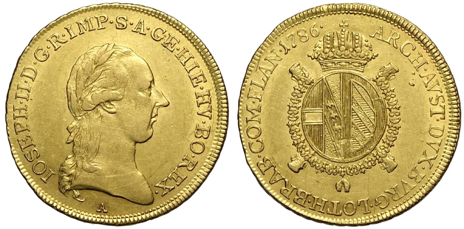 Austrian Netherlands, Joseph II (1765-1790), 1/2 Souverain d'or 1786-A Vienna, Au mm 22,5 g 5,55 SPL-FDC