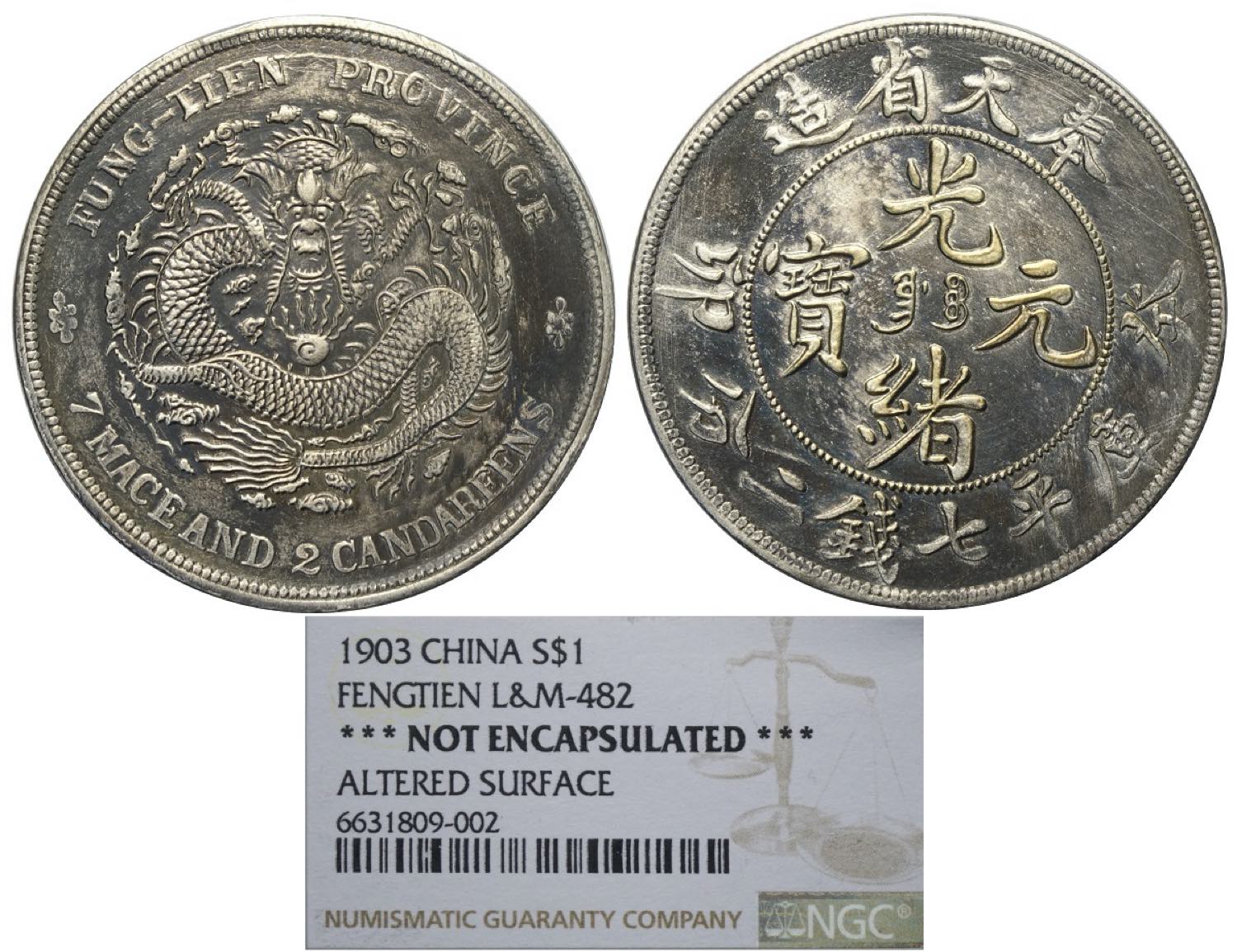 China Fengtien, Kuang-Hsu (1875-1908), Dollar 1903, L&M-482 Ag mm 39 with label NGC (no slab) Altered Surface (cert. 6631809002)