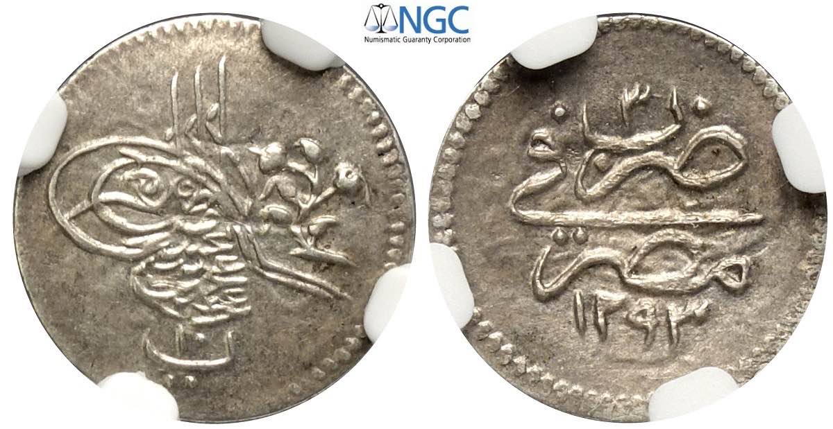 Egypt, Abdul Hamid II, 10 Para AH1293/3, Ag mm 14 in Slab NGC MS63