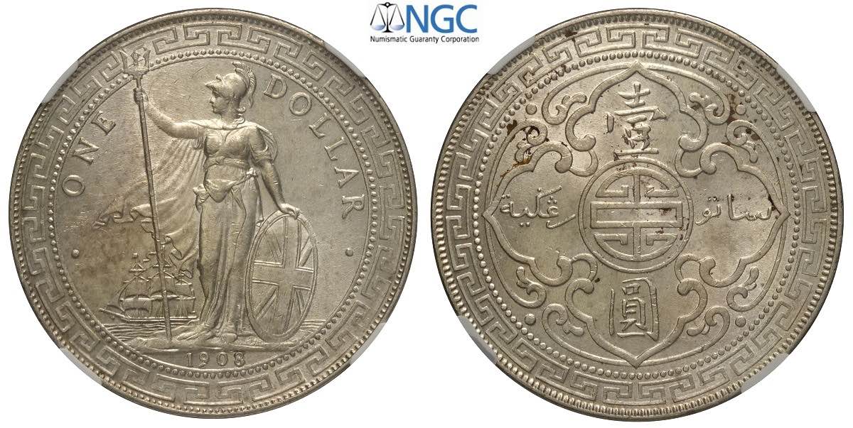 Great Britain, Edward VII, Dollar 1908-B, Ag mm 39 in Slab NGC MS62