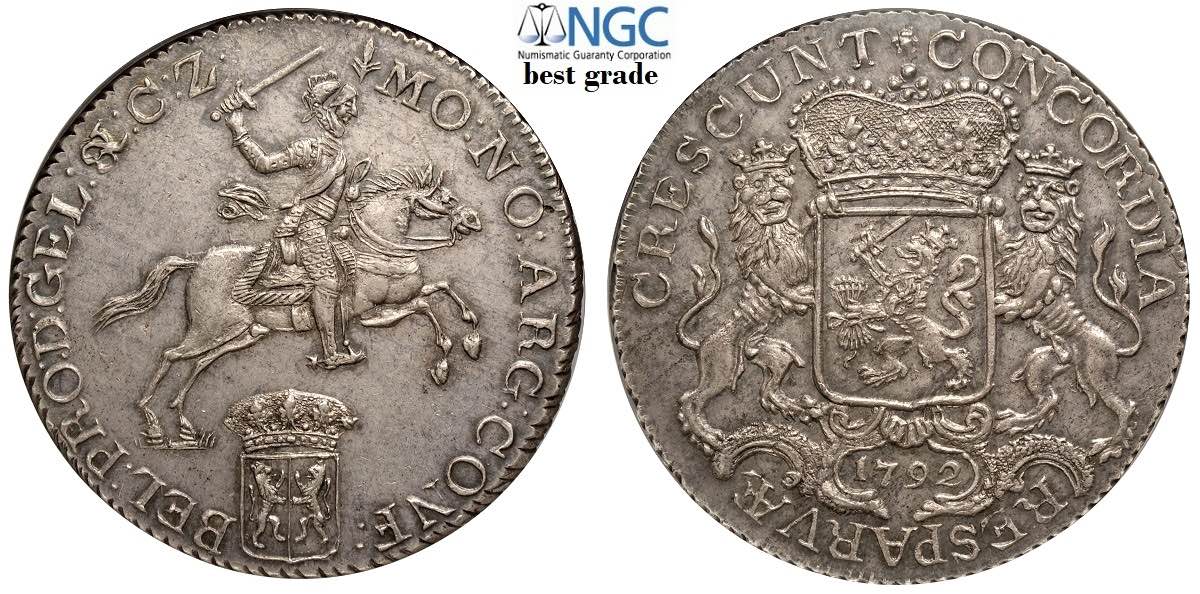 Netherlands Gelderland, Ducaton 1792, Ag mm 42 in Slab NGC MS63 (best grade of NGC)