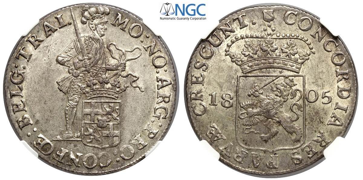 Netherlands, Batavian Republic, Rijksdaalder 1805, Ag mm 40 in Slab NGC MS63