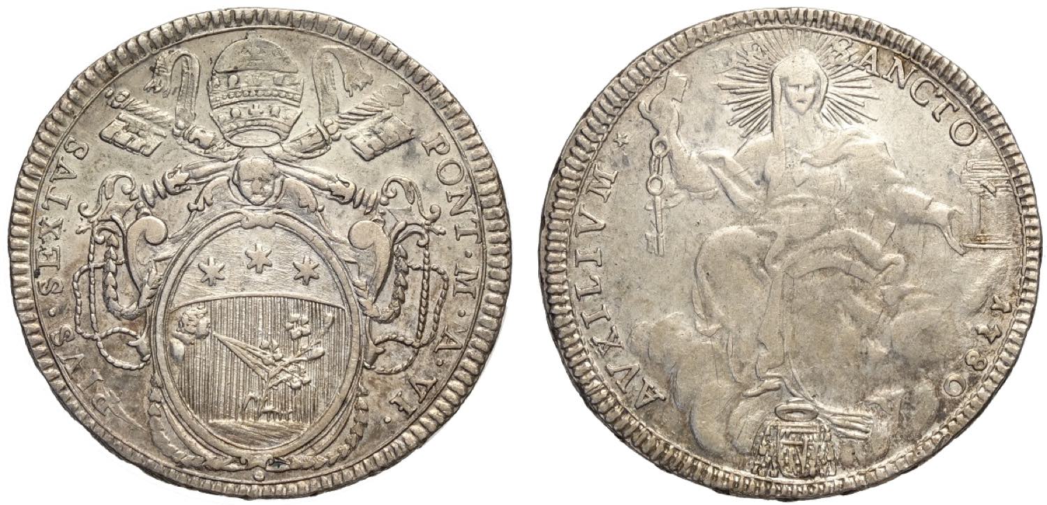 Roma, Pio VI (1775-1799), Mezzo Scudo 1780 anno VI, Rara Ag mm 34 g 13,19 BB-SPL