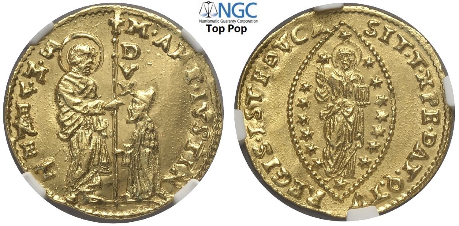 Venezia, Alvise II Mocenigo (1700-1709), Zecchino, Au mm 21 g 3,48 alta conservazione, in Slab NGC MS64 (TOP POP! cert. 5784542001)