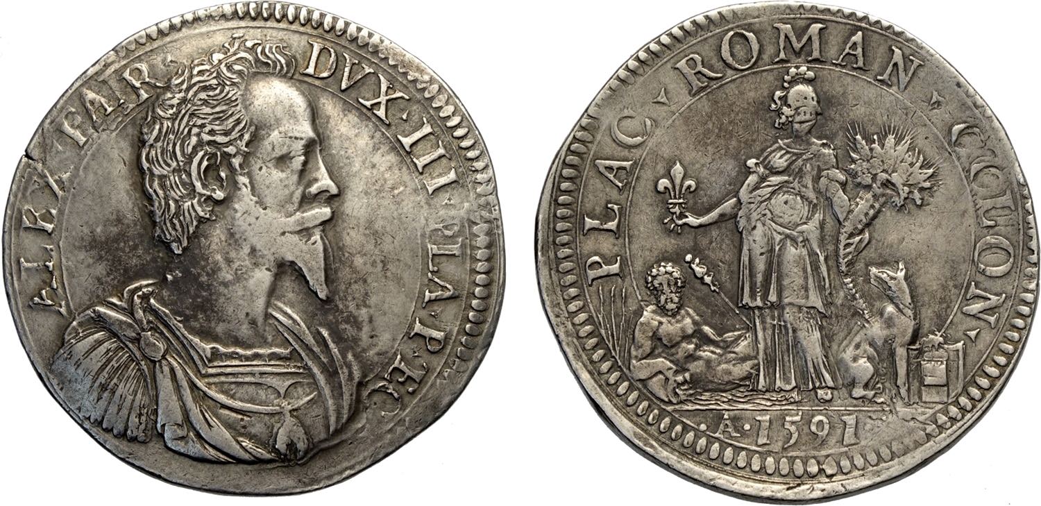 Piacenza, Alessandro Farnese (1586-1591), Scudo 1591, Rara Ag 42,5 mm 31,77 g, BB+