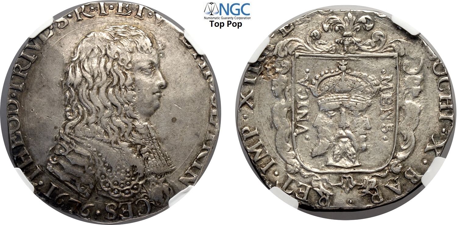 Retegno, Antonio Teodoro Trivulzio (1676-1678), Filippo stretto 1676, Rara Dav-4137 MIR-901 Ag 38,5 mm 27,5 g, in Slab NGC AU58 Top Pop! ...