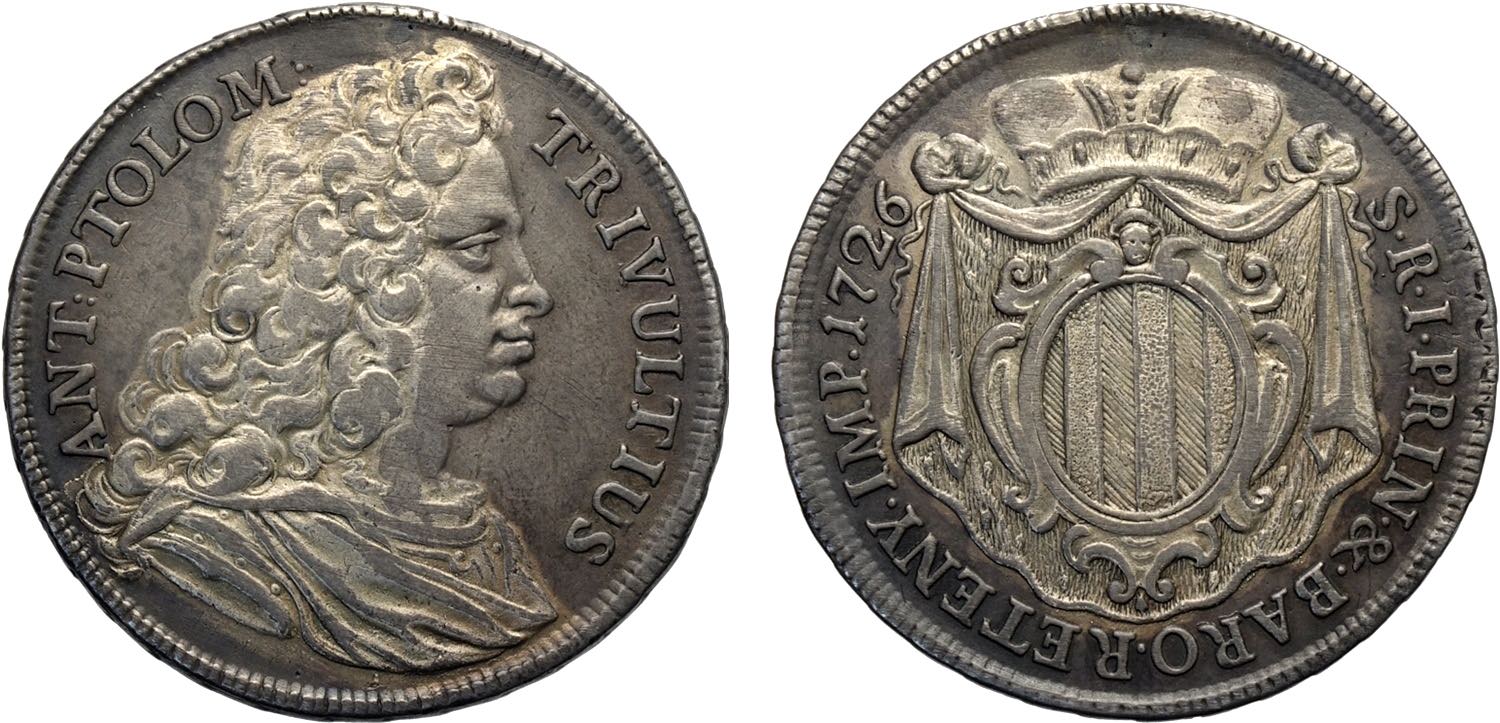 Retegno, Antonio Tolomeo Gallio/Trivulzio (1708-1767), Mezzo Tallero 1726, RR Ag 34,5 mm, BB-SPL