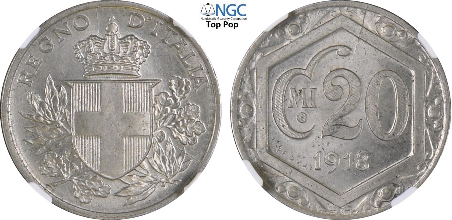 Regno d'Italia, Vittorio Emanuele III (1900-1943), 20 Centesimi 1918 Prova, RRRR Pag-306 Cu-Ni 21,5 mm, 3,99 g, prova di rara apparizione ...