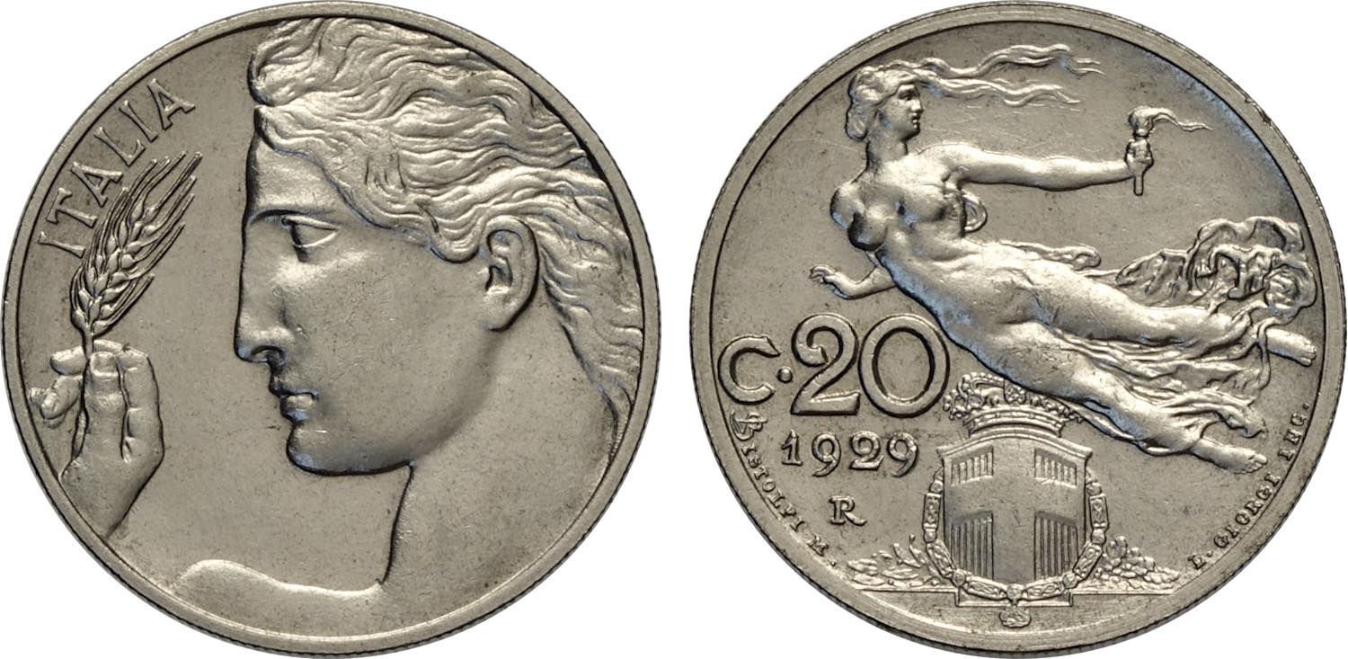 Regno d'Italia, Vittorio Emanuele III (1900-1943), 20 Centesimi 1929, Tiratura: 50, RRR Ni 21,5 mm, 3,9 g, FDC